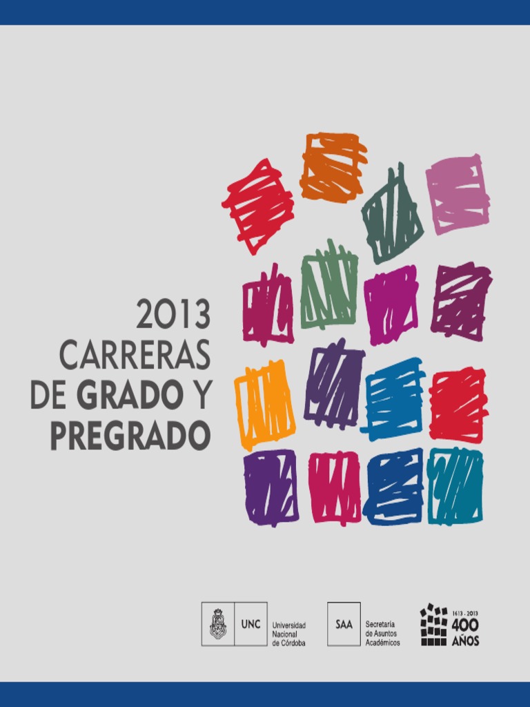 Guia de carreras la guia estudios en la unc es una publicacion anual y esta dirigida a la comunidad educativa secundaria en general y especificamente a jovenes que estan finalizando la escuela secundaria y se proponen ingresar a nuestra universidad. Tiene sede en la ciudad de cordoba. Se dictan las siguientes carreras maestrias cursos postgrados y doctorados.