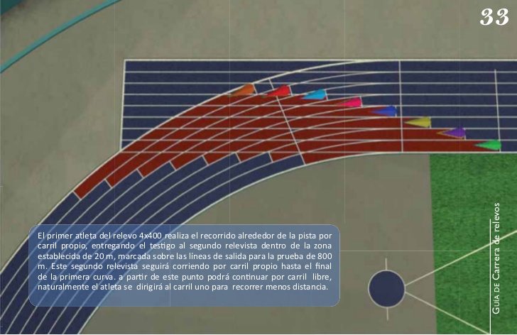 En los estados unidos los bomberos de nueva york fueron los encargados de darles popularidad al realizar una carrera benefica con esta modalidadlas carreras de relevos adquirieron fama en los juegos olimpicos del ano 1912 en estocolmo durante los cuales estados unidos gano el relevo de 4 x 400 metros y los relevos femeninos fueron introducidos en los juegos olimpicos de munich en 1972. En las carreras de relevos cuantos atletas corren. Normalmente en las pruebas de velocidad corren 8 atletas en pruebas de media distancia 1500 3000 5000 corren un promedio de 12 atletas en el marathon fuera del estadio el numero de atletas aumenta pueden ser miles el ancho de la pista es de 120 mts el largo es depende de la pruebauna vuelta a la pista tiene 400 mts.