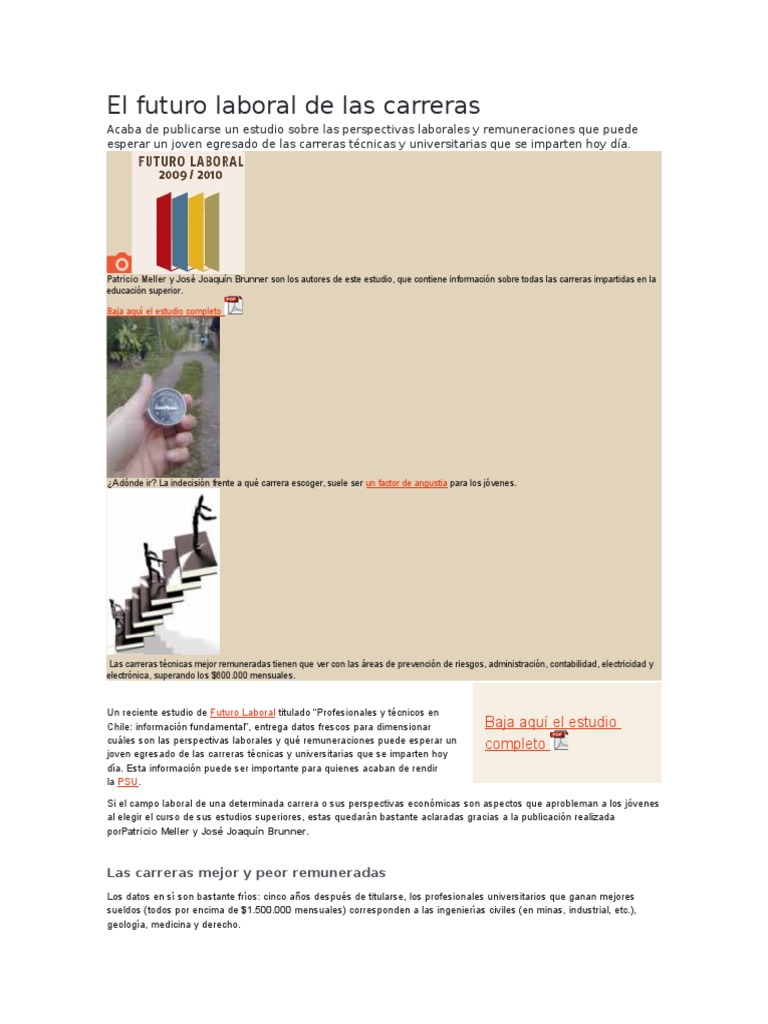 Carreras mejor pagadas a futuro chile Indeed lately is being sought by consumers around us, perhaps one of you. Individuals are now accustomed to using the internet in gadgets to view image and video information for inspiration, and according to the title of the post I will discuss about Carreras Mejor Pagadas A Futuro Chile.