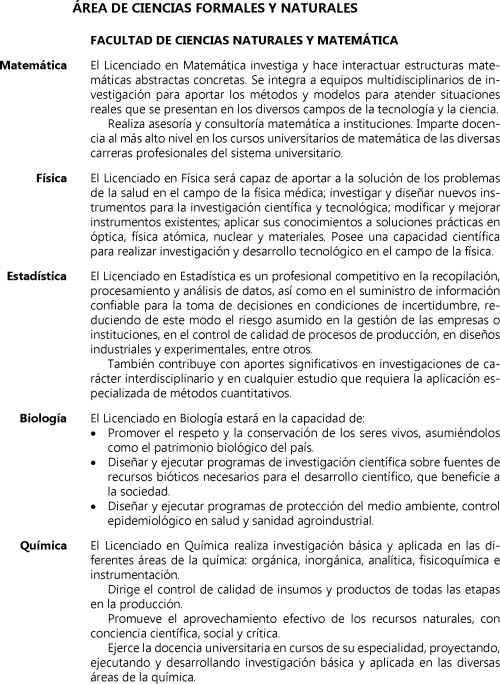 Sanidad y salud 31 medio ambiente zoologia y veterinaria 14 ciencias experimentales e industria quimica 8 ciencias sociales 3 educacion y formacion 3 cuerpos de seguridad criminologia carrera militar 1 deporte y educacion fisica 1 humanidades 1. Te entrega una base solida en las ramas basicas de matematicas para trabajar en investigacion aplicada o docencia.