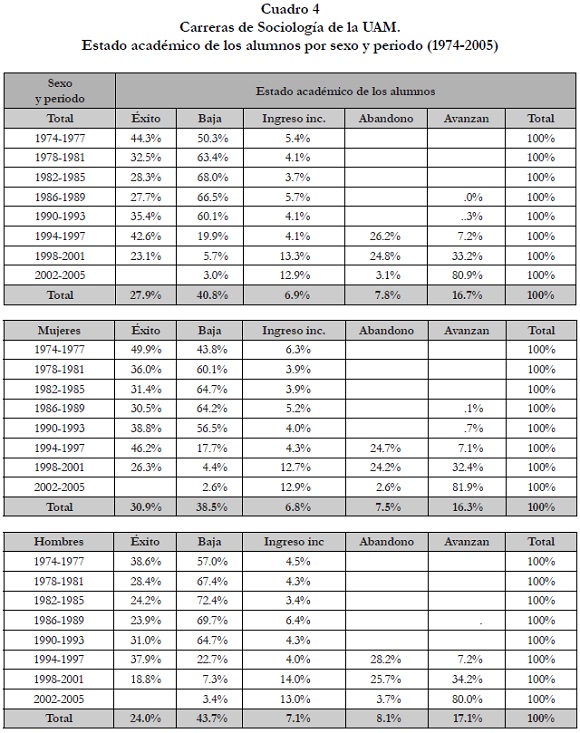 Participacion Y Desempeno De Las Mujeres En La Educacion Superior Un Enfoque Desde Las Carreras De Sociologia En La Uam 1974 2005 Carreras En La Unam Modalidad Abierta