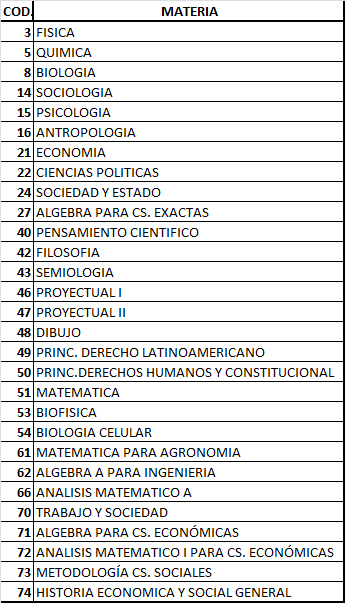 Matematica equivalente a codigo 51 del cbc. El 20 de noviembre de 2019 el consejo superior de la uba aprobo por unanimidad la resolucion 199519 que establece la capacitacion obligatoria en las tematicas de genero y violencia contra las mujeres para todas las autoridades docentes investigadores estudiantes y nodocentes que desarrollan. Ciencias sociales y humanas ciencias biologicas y de la salud y ciencias exactas tecnologia y diseno.