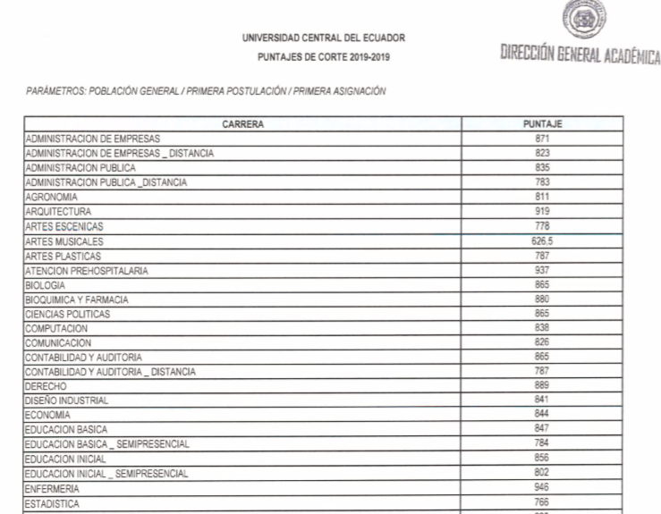 Carreras y puntajes de la universidad central del ecuador 2019 Indeed recently is being sought by users around us, maybe one of you personally. Individuals now are accustomed to using the net in gadgets to see image and video information for inspiration, and according to the title of this article I will discuss about Carreras Y Puntajes De La Universidad Central Del Ecuador 2019.