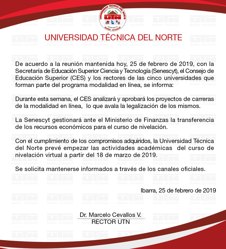 Revisar y asegurarse de haber seleccionado correctamente las carreras recuerde seleccionar solo carreras de su interes. Listado del total de cupos disponible para el 2020 reportado por el instituto de educacion superior universidad tecnica del norte. Acreditada por 6 anos hasta 2022.