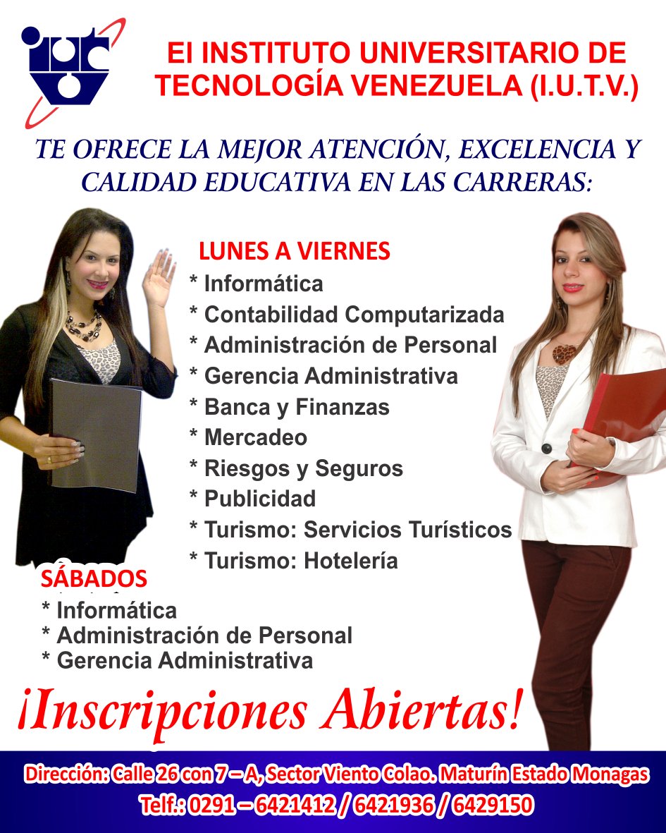 Es tu oportunidad de alcanzar un titulo profesional que te abriran muchas puertas estes donde estes. Sede iutv municipio san simon parroquia santa cruz maturin estado monagas. Instituto universitario de tecnologia venezuela iutv extension maturin.