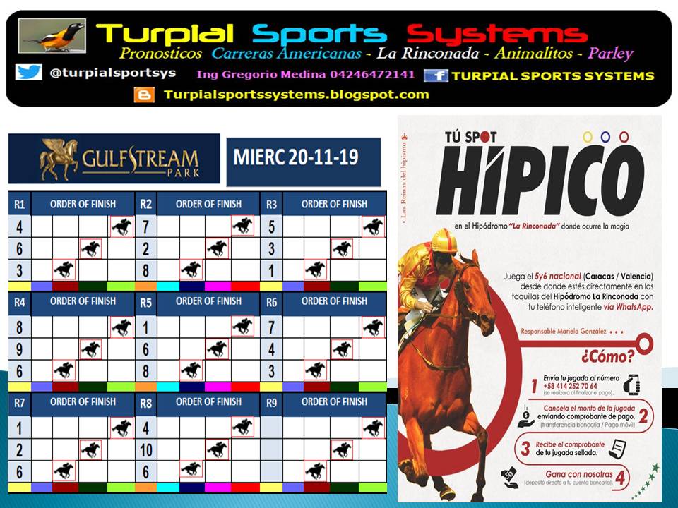 Turpial Sports Systems Pronosticos Carreras Americanas Miercoles 20 11 19 Carreras Mejor Pagadas En Quintana Roo