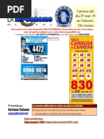 Carreras artisticas y sociales. Valrazio ganador de la copa arzak y del clasico copa de oro en recorrido de 2400 metros ocupo la tercera posicion en su mas reciente salida. Mirela 3 7 la de plata. A partir de esta semana voy a regalar la gaceta toda la semana solo pon gaceta y te la paso escribeme al wasap mi pana vente ya ya ya 04123938934 04123938934 publicidad para jugar en linea necesitas informaciones adelantadas y un carrera a carrera de buen nivel.