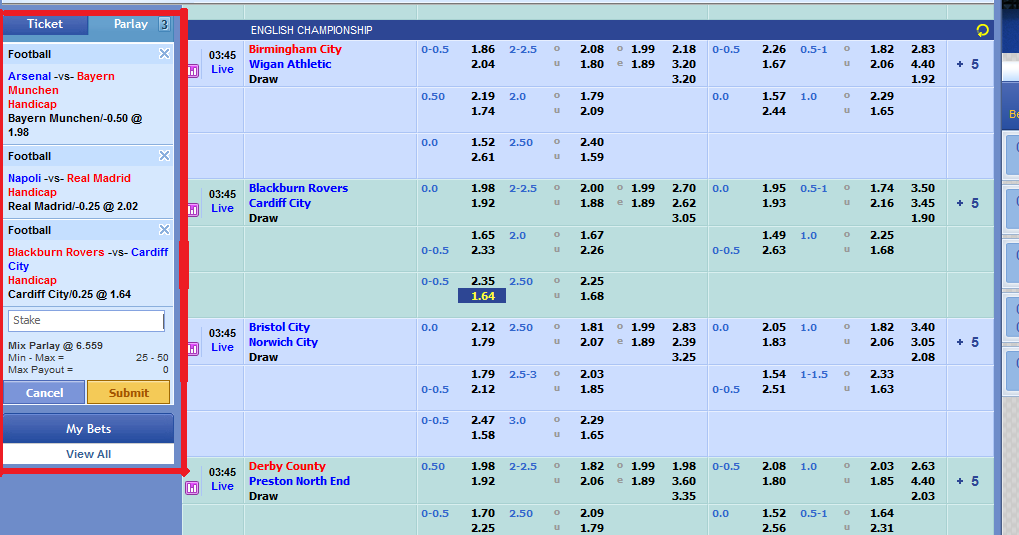 Selain mix parlay yang sudah fix seperti di atas situs judi bola resmi dan judi slot casino online superbola juga menyediakan parlay campuran yang merupakan kombinasi dari parlay fix di atas tersebut ditambah dengan beberapa parlay yang lebih kecil. Max payout modal x odds 1 x odds 2 x odds 3 dan seterusnya bila kita memasang bet parlay lebih dari 3 partai. Sebagai awalnya harap anda terlebih dahulu mengetahui cara hitung parlay standard dan juga pengertian apa itu kalah 12.