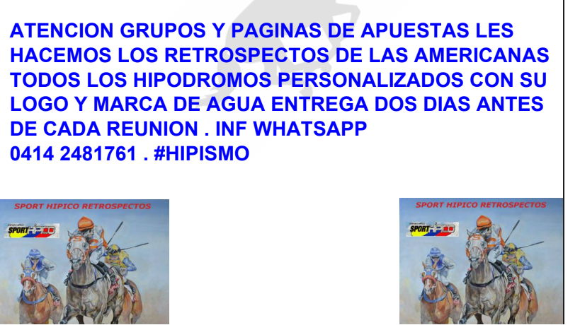Carreras americanas en vivo senal original llamar al 0424 324 06 34. Vendemos video en vivo de las carreras de caballos nacionales e internacionales solo video original somos los analistas mas solicitado en internet. Carreras americanas datos y picks gratis hoy.
